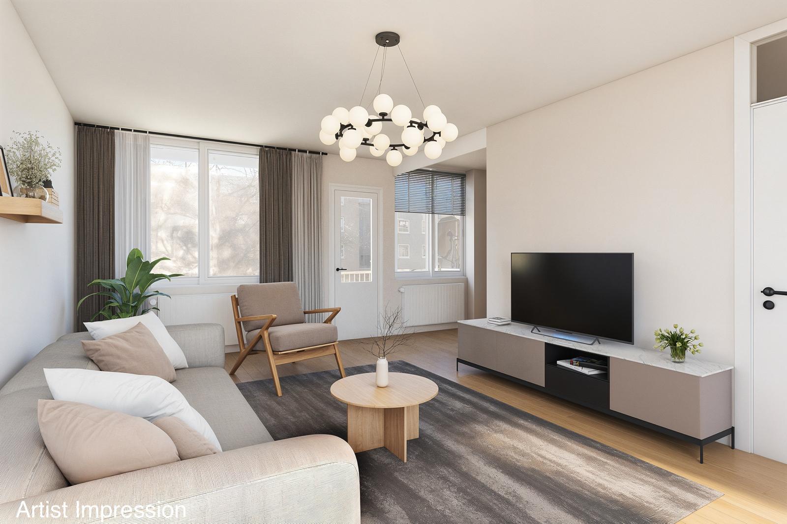 The semi-open kitchen, renovated in 2018, adjoins the living room and is functionally equipped with various built-in appliances. The layout offers a pleasant balance between openness and separation. From the living room there is access to the balcony, a lovely place to relax.